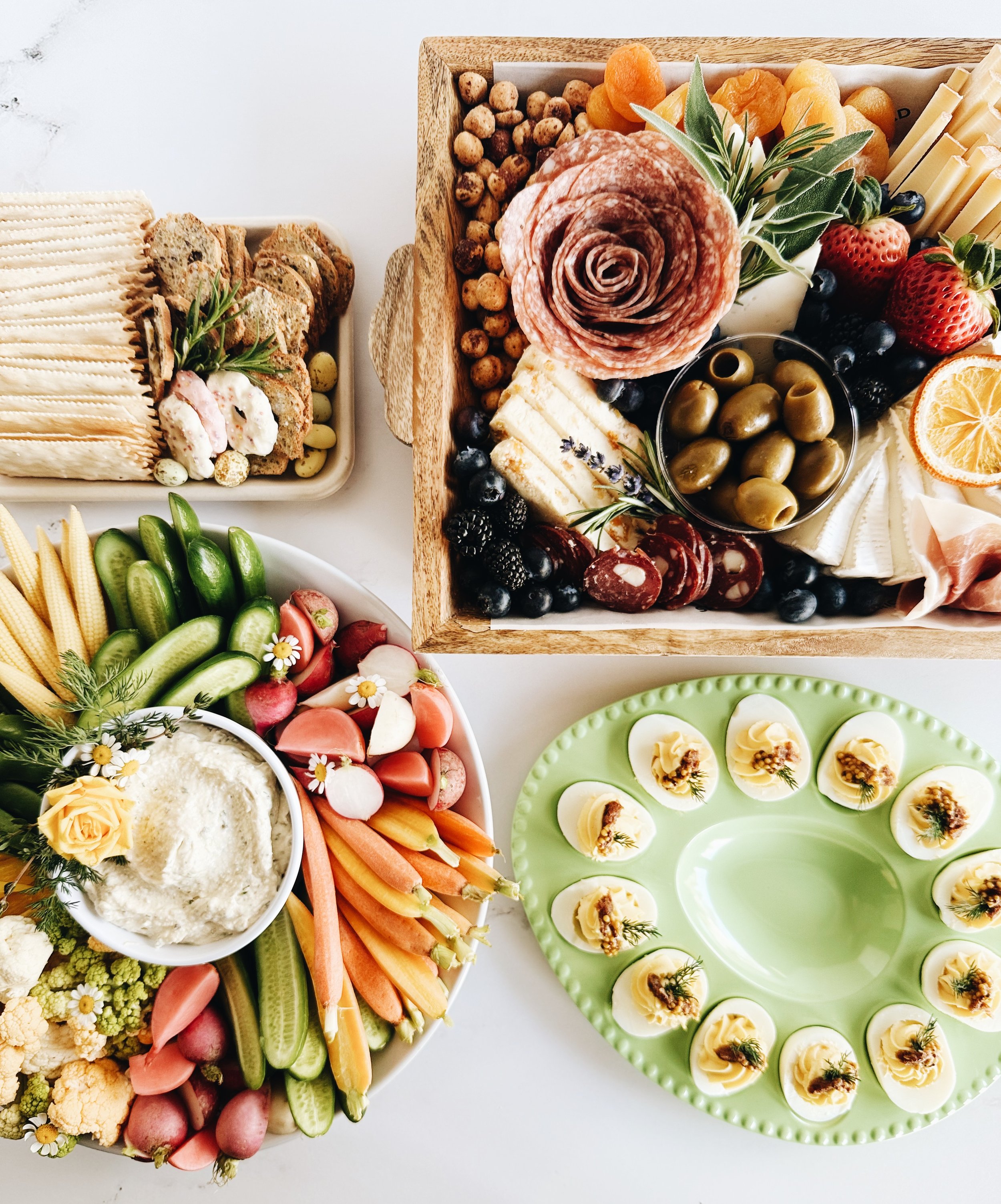 Seasonal Offerings designed to delight. EASTER $130 Easter Brunch Board | feeds 8+ Includes 4 cheeses, 2 charcuterie, olives, nuts, fresh & dried fruit $130 $85 Easter Crudité | feeds 6+ House-made Mint, Feta & Pistachio Dip & seasonal crudité $85 $36 Bacon Bourbon Deviled Eggs | 1 dozen House-made Bacon Bourbon Jam & Mustard Caviar. $36 $240 Easter Brunch Bundle | Feeds 12+ Brunch Charcuterie Board, Crudités Platter, 1 Dozen Bacon Bourbon Deviled Eggs & Cracker Box $240 Only available between 3/3-3/5 ORDER NOW Looking to dazzle your guests? Consider booking a grazing table with us!